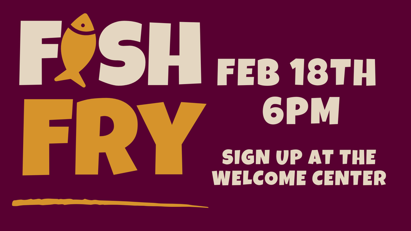 Sign up this Sunday at the Welcome Center at church to give us a total of how many people you expect to come so that we can purchase enough fish (or we will have to pray for God to multiply the fish). If you are inviting friends, please include them in your total count. We are also asking you to consider bringing a side or dessert or both. If you are available to help set up or clean up, please let us know. You can let us know via the sign-up link or sign-up sheet at the Welcome Center.